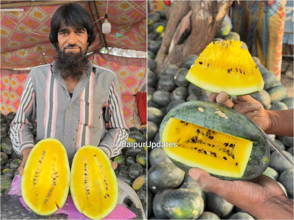 स्वाद भी खास, रंग भी अलग; उदयपुर के बाजारों में छाया “पाइनएप्पल तरबूज”, जबरदस्त डिमांड